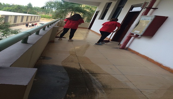 此次活动在各学生干部昂扬的声音中拉开了序幕,学生会成员拿着抹布在几个部长的带领下擦拭教学楼的栏杆、教室门窗,把蒙上灰尘的地板拖得干干净净。虽然劳动辛苦,但是每个人都洋溢着笑脸。最后,所有成员在第二教学楼前合影纪念此次意义非凡的活动。